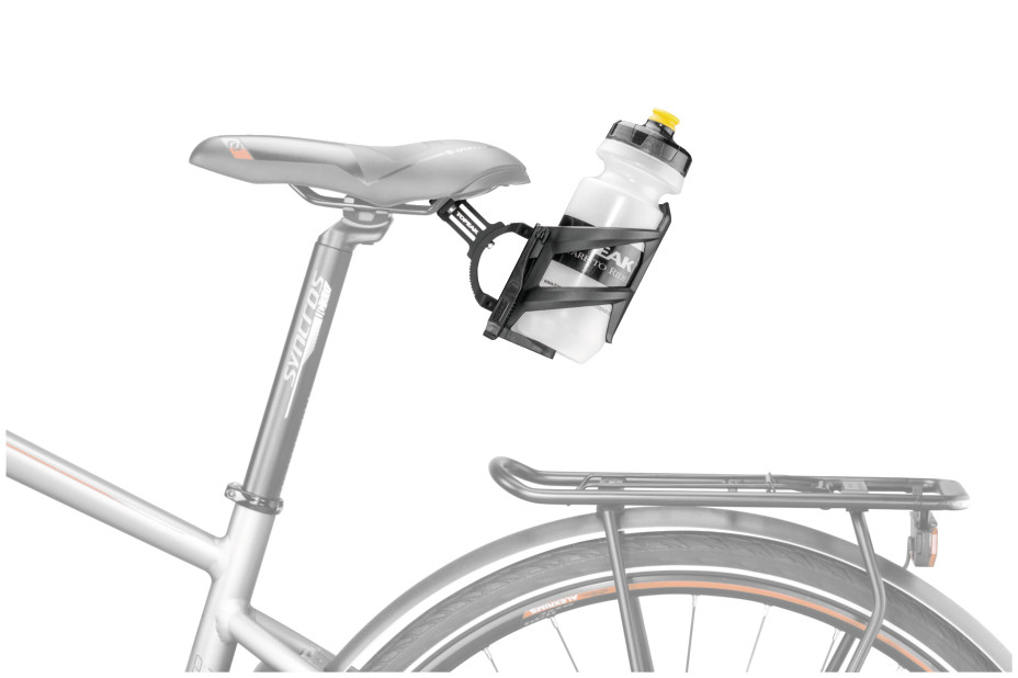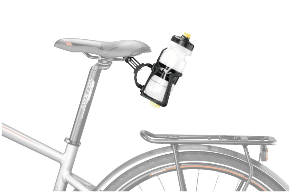 - Flaschenhalter-Adapter für die Montage hinter dem Sattel