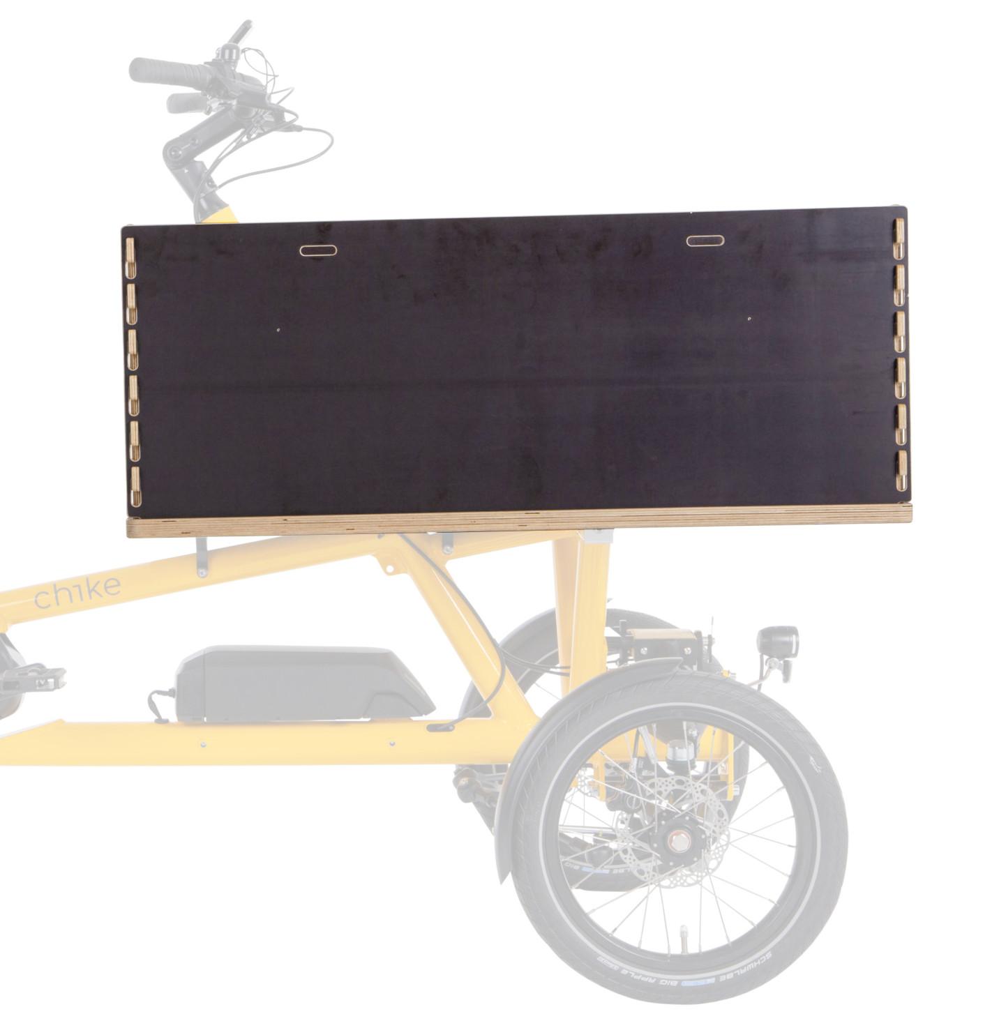 Mit der robusten Holz-Umwandung verwandelst du die Ladeplattform deines Chike E-Cargo in eine Transportbox mit ca. 210 Liter Fassungsvermögen. Durch das stabile Verzahnungssystem lässt sich die Umw ...