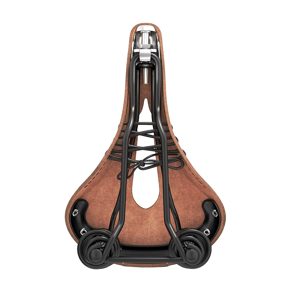 Der Brooks Flyer Carved Ledersattel ist mit seiner Federung besonders komfortabel. Die Aussparung im Dammbereich minimiert Druckstellen und beugt Taubheitsgefühlen vor. Durch ein verstellbares Lederband in den Sattelkanten lässt sich der Sattel individuell anpassen.