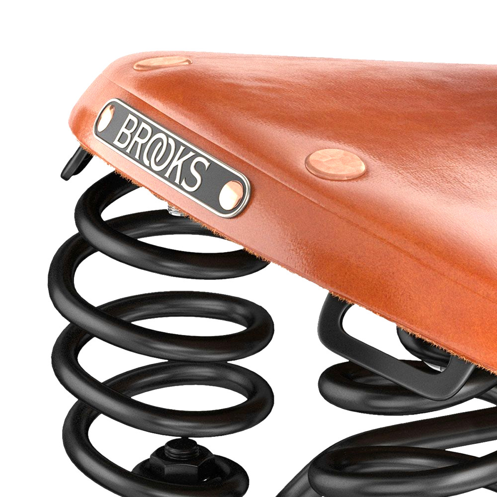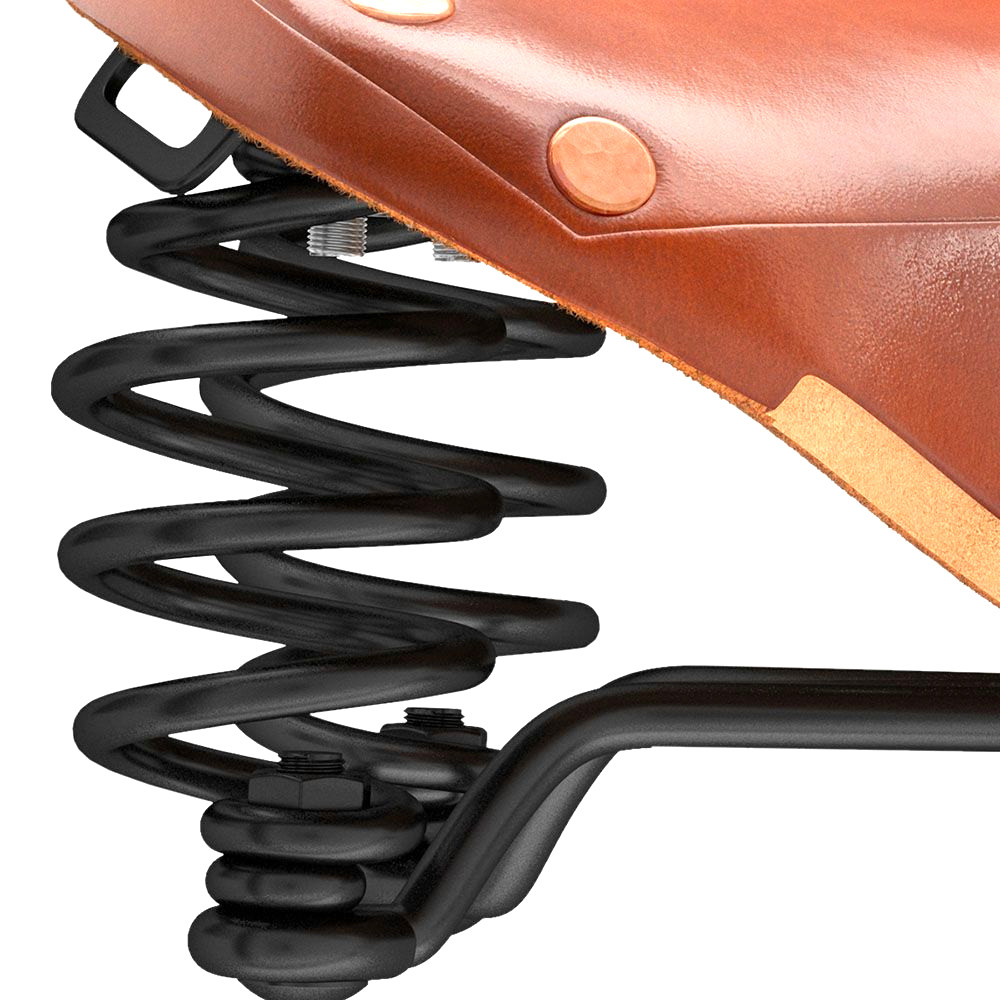 Der Brooks Flyer Spezial zeichnet sich, wie das Standardmodell, durch seine strapazierfähige Kernlederdecke aus, die sich der persönlichen Anatomie des Fahrers optimal anpasst. Angeschnittene Seitenflanken sind ein optisches Highlight und bieten in Kombination mit der Spiralfederung dauerhaften Sitzkomfort. Das stilvolle Design wird durch handgeschlagene Kupfernieten abgerundet.