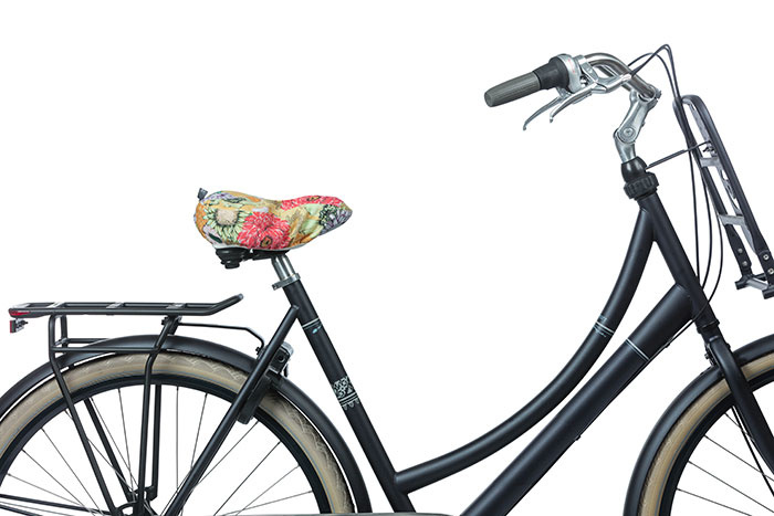 Dank getapter Nähte hält der Basil Bloom Field Sattelbezug den Sattel auch bei starkem Regen vollständig trocken. Er lässt sich leicht über den Sattel ziehen und wieder abnehmen.