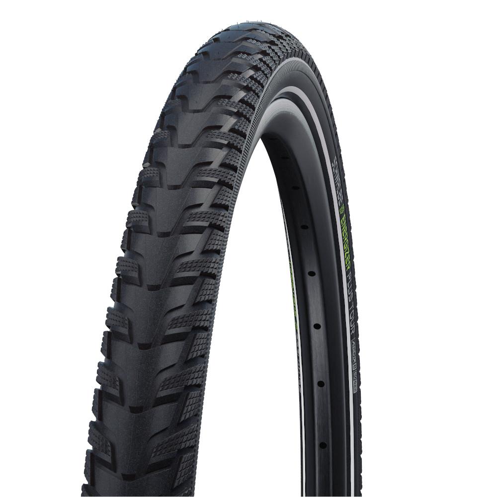 Der Schwalbe Energizer Plus Tour Drahtreifen ist mit seiner 3mm starken GreenGuard Einlage besonders gut gegen Pannen geschützt. Das überarbeitete Trekking Profil ist auf lange Touren ausgelegt und bietet auch auf unbefestigten Fahrbahnen guten Grip. Der Reifen ist für E-Bikes aller Klassen zugelassen.