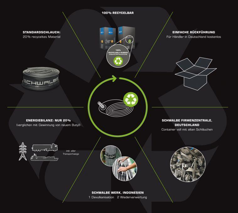 Wegen ihrer exzellenten Fertigung bewähren sich Schwalbe Schläuche seit Jahren auf dem Markt. Sie sind gleichmäßig in der Wandstärke und rund im Lauf. Durch ihre präzise Fügung sind sie in der Naht haltbar. Ein Vergleichstest ergab: Der Schwalbe-Schlauch hält den Luftdruck deutlich länger stabil als andere Schläuche (diese verloren in 30 Tagen fast doppelt so viel Luftdruck wie der Schwalbe-Schlauch). Ein möglicher Grund dafür könnte ein niedrigerer Butylanteil bei den anderen Schläuchen sein. Die besondere Qualität der Schwalbe Schläuche ergibt sich aus der Einzigartigkeit ihrer Gummimischung. Um diese hohe Qualität zu gewährleisten, wird jeder einzelne Schwalbe Schlauch für mindestens 24 Stunden aufgepumpt und kontrolliert, bevor er das Werk verlässt.