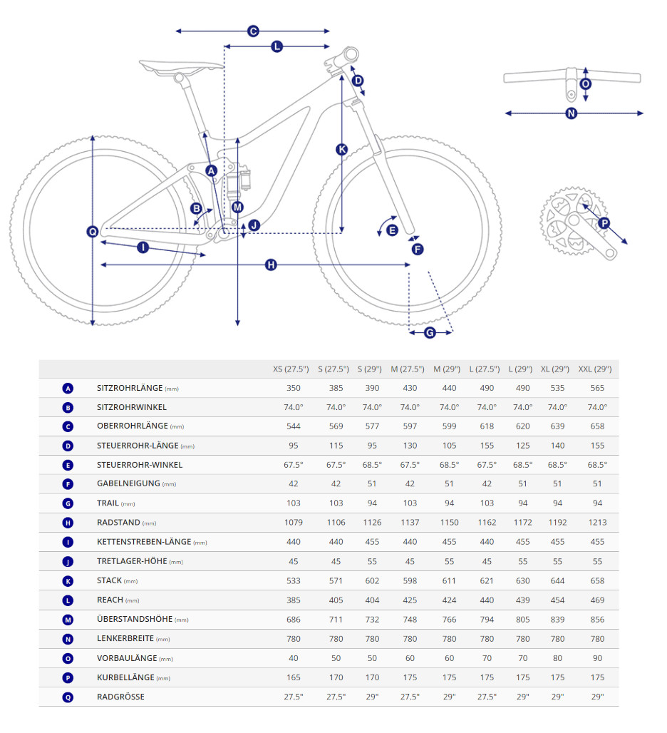 - Kurbel: ProWheel forged, 22/36 Zähne, Kurbellänge Gr. S: 170 mm, M-L: 175 mm