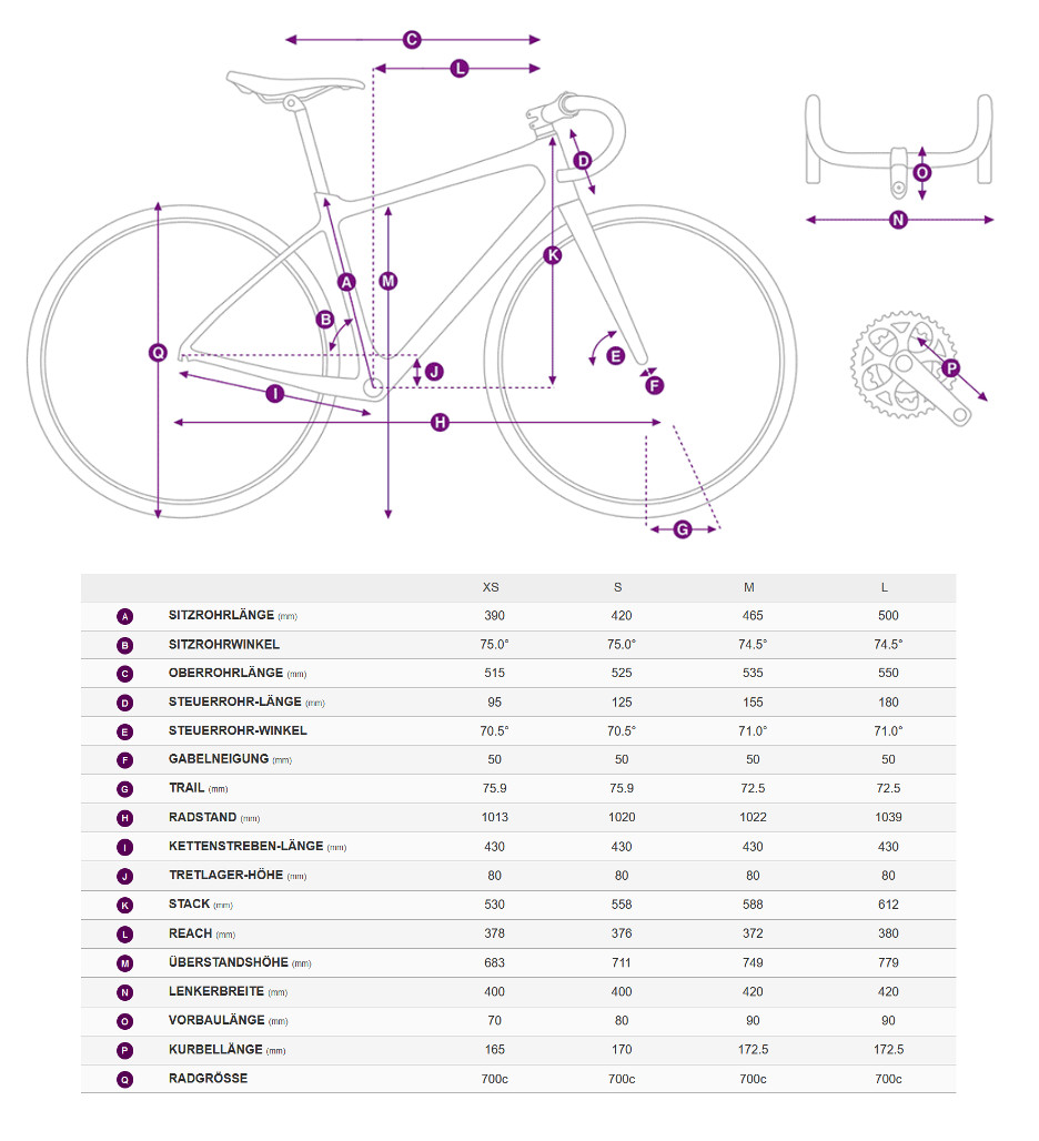 - Advanced Carbon-Rahmen und Carbon-Gabel, erlauben eine Reifenbreite von bis zu 45 mm