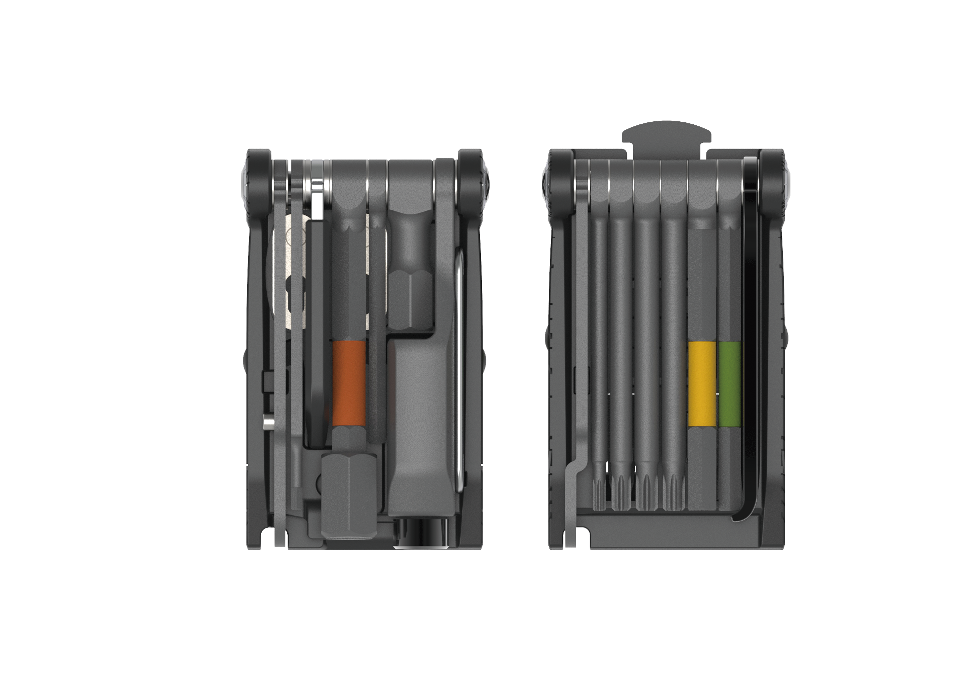 Das ALiEN™ X aus dem Hause Topeak ist die konsequente Weiterentwicklung des Kult-Tools ALiEN™. Im Klappmechanismus verbergen sich 34 clever integrierte Funktionen in Pro-Qualität. Neben verschiedenen Torx®-Schlüsseln verfügt das neue Multitool über eine Power Link-Zange für Single- und Multi-Speed Ketten. Das zweiteilige Design verbessert den schnellen Zugriff der einzelnen Werkzeuge und erhöht die Hebelwirkung während der Arbeit. In der mitgelieferten Nylontasche ist das Multifunktionswerkzeug gut geschützt startklar für die nächste grosse Tour.