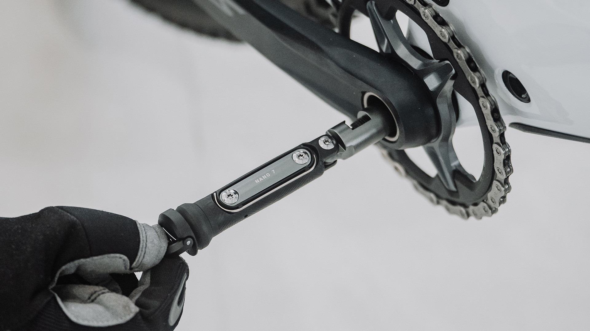 - Kompaktes Werkzeug integriert sich in den Hohlraum des MTB-Tretlagers