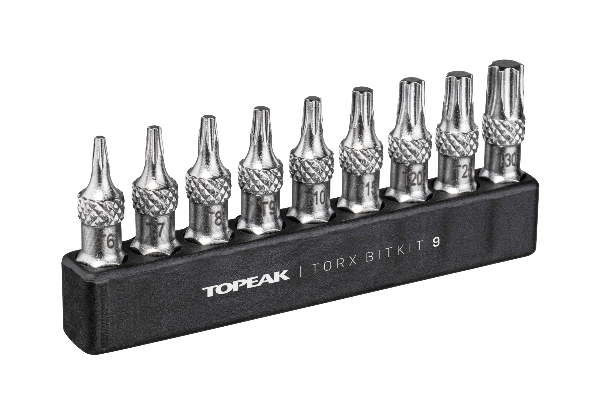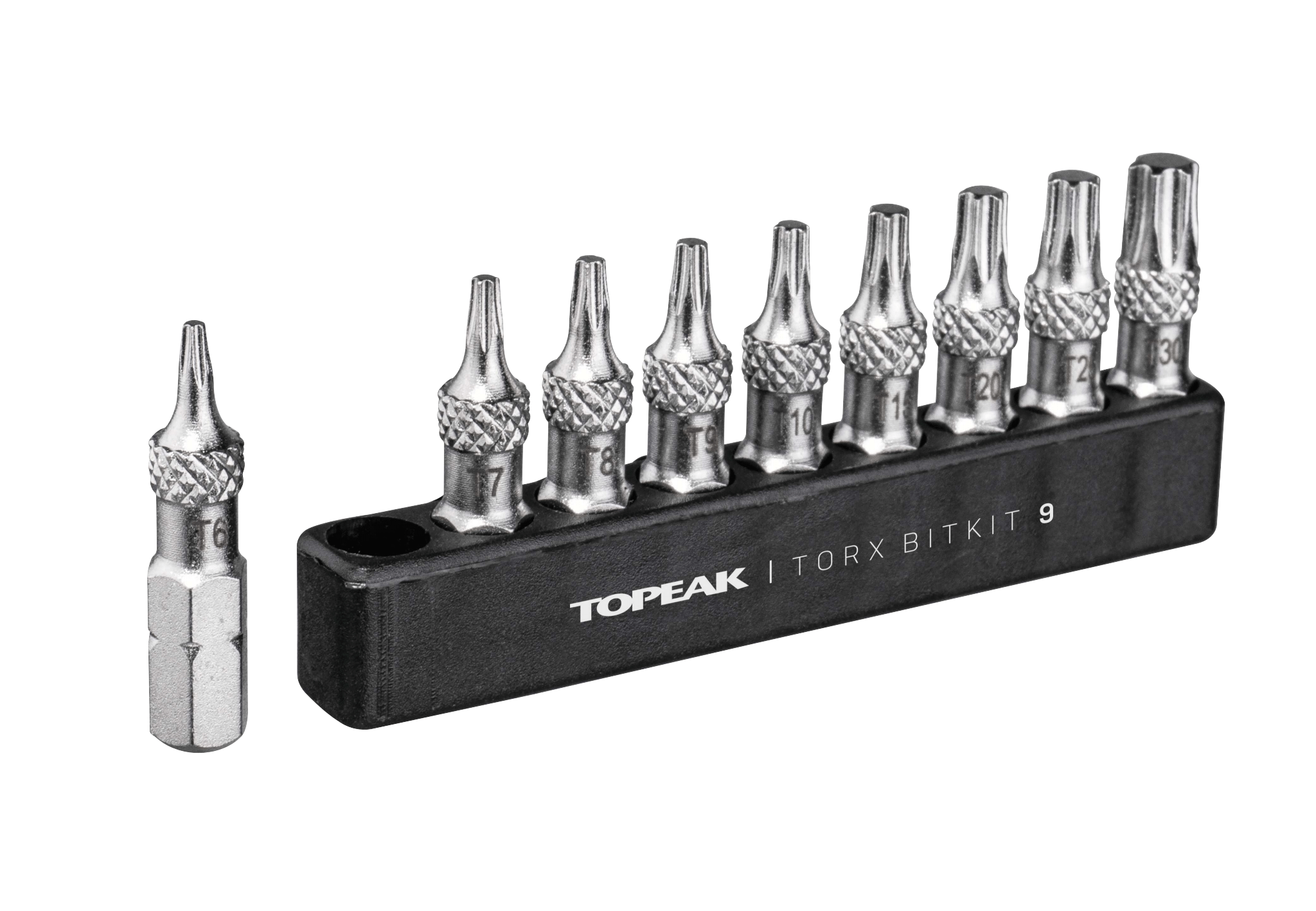 Das 9-teilige BitKit bietet dir alle Torx®-Aufsätze, die du standardmässig für die Reparatur und Wartung deines Velos brauchst. Die Bits entsprechen den gängigen Normen und passen auf alle Ratschen und Drehmomentschlüssel von Topeak und den meisten anderen Herstellern. In der Höhe sind sie jedoch 5 mm länger als Standard-Bits, so dass auch versenkte Schrauben gut erreichbar sind. Die eingearbeitete Riffelung der Bits erleichtert die Entnahme aus Werkzeug oder Halterung.