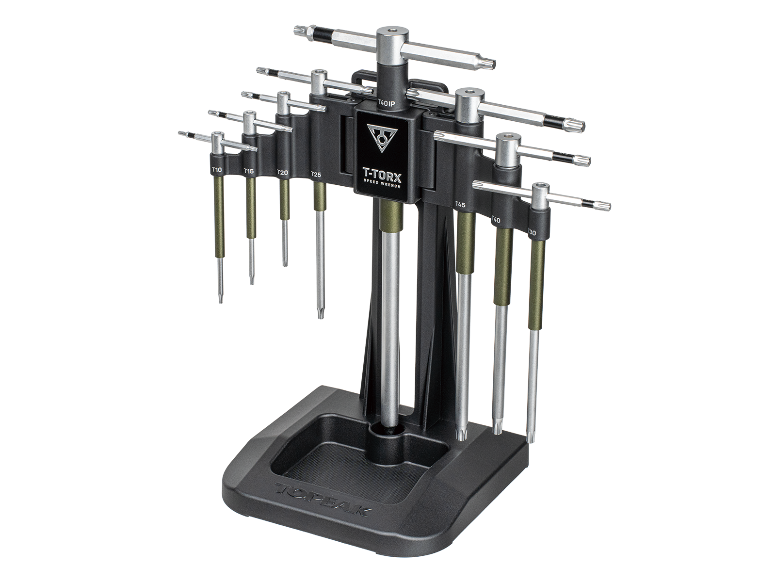 Das Topeak T-Torx Speed Set besteht aus 8 Torxschlüsseln in Profiqualität. Gehärteter Stahl minimiert den Verschleiss und sorgt für eine längere Werkzeuglebensdauer. Torx®-Köpfe an jedem Ende des Griffs ermöglichen zusätzliche Hebelwirkungen, während eine Speed Sleeve Schnelldrehhülse für mehr Geschwindigkeit und Effizienz beim Schrauben sorgt. In dem mitgelieferten Werkzeughalter sind die Schraubenschlüssel jederzeit griffbereit und bestens aufbewahrt.