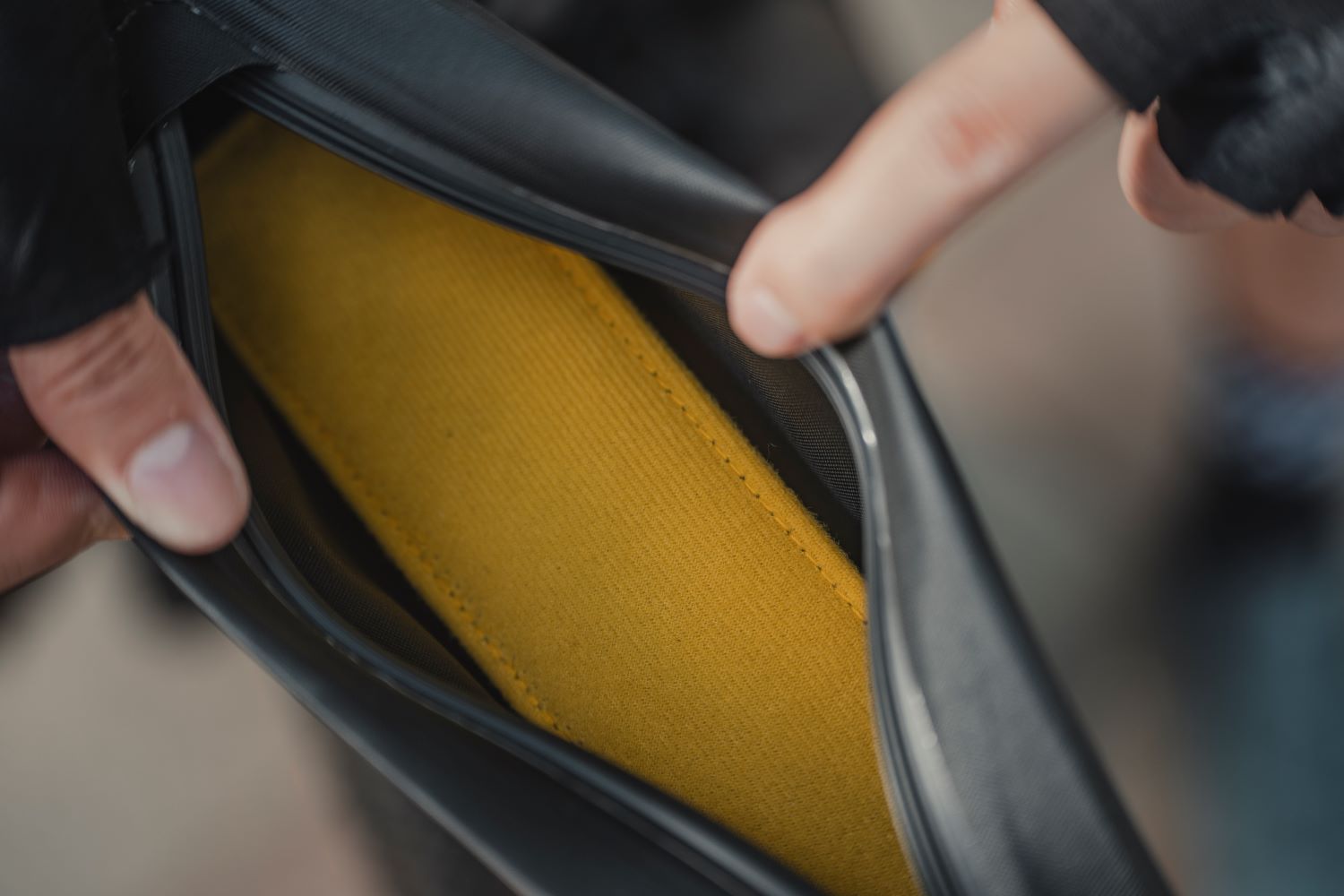 Tipp: Schmutz, Wasser und Staubpartikel, die sich zwischen Rahmen und Tasche setzen, können mit der Zeit für unschöne Rückstände oder Schäden am Lack sorgen. Wir empfehlen dir daher, den Rahmen mit einer Schutzfolie an den Kontaktstellen zu versehen.