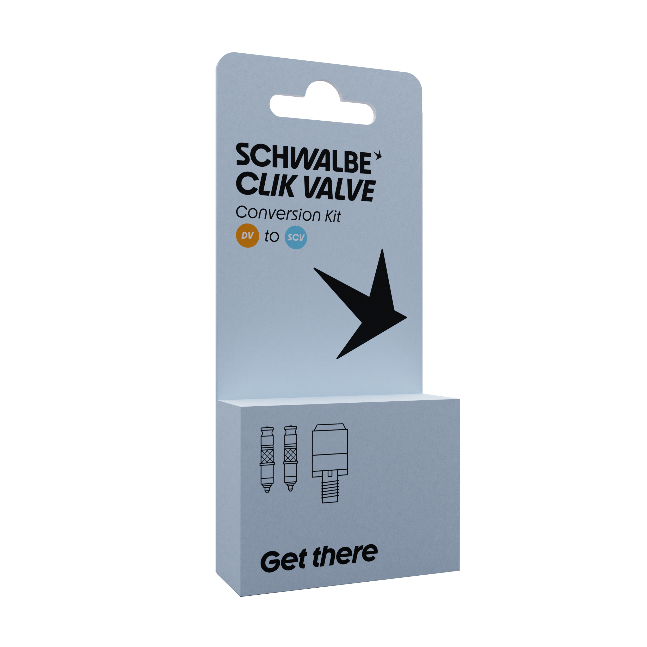 Informations sur le produit "Kit de conversion Schwalbe Clik Valve DV avec adaptateur"