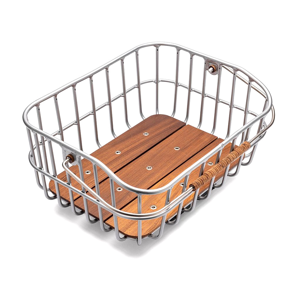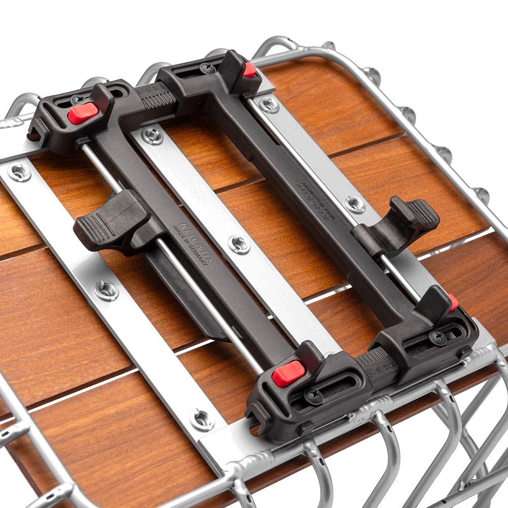 Le panier de porte-bagages Brooks Peckham est en aluminium haut de gamme, en bois dur Iroko et en cuir véritable tanné avec des produits végétaux. Il se monte sur un porte-bagages standard, avant ou arrière, via le système Klickfix UniKlip 2. La fixation rapide te permet de le retirer et de l'utiliser une fois le vélo déposé. Il est en outre parfaitement adapté au sac fourre-tout Brooks Clapham.