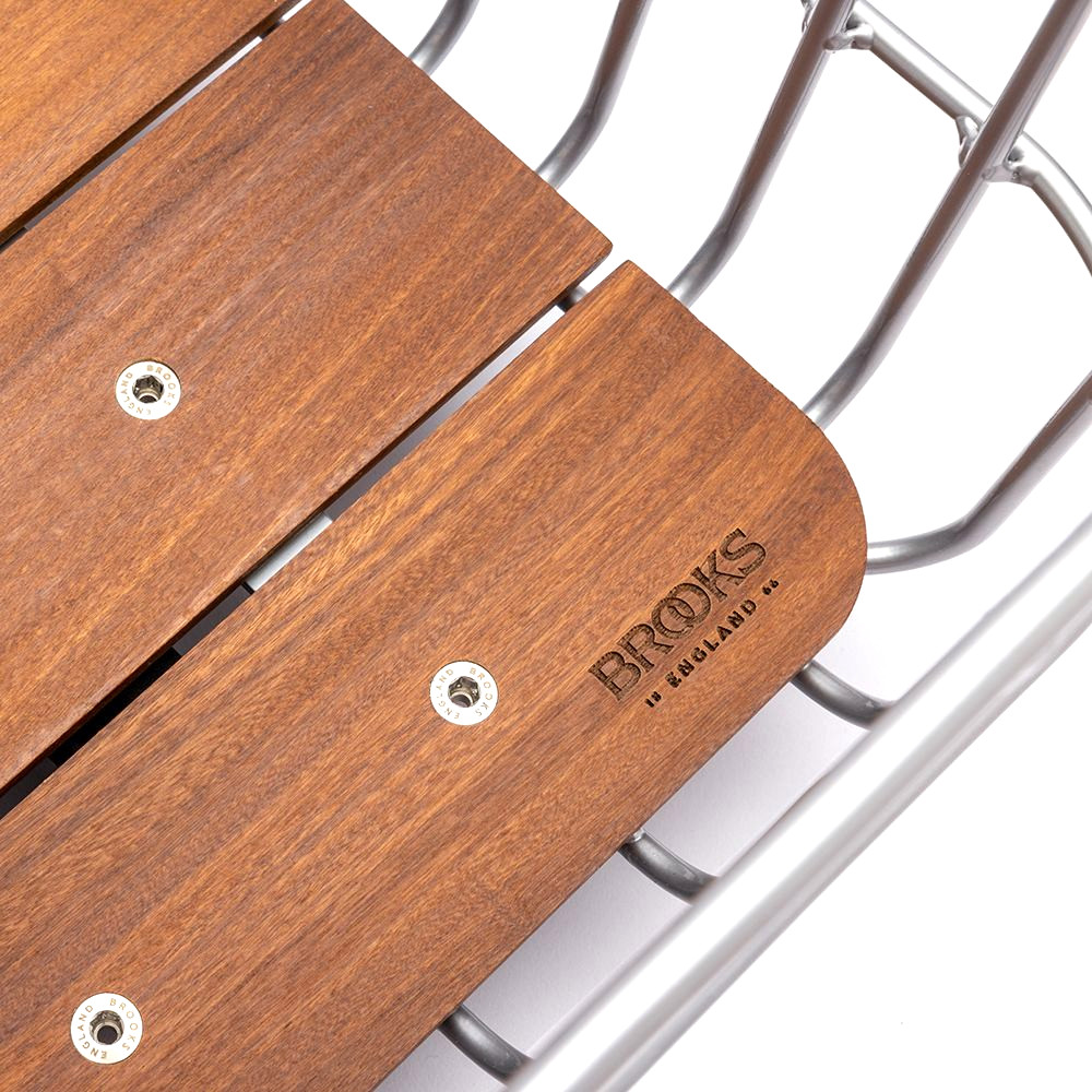 Le panier de porte-bagages Brooks Peckham est en aluminium haut de gamme, en bois dur Iroko et en cuir véritable tanné avec des produits végétaux. Il se monte sur un porte-bagages standard, avant o ...